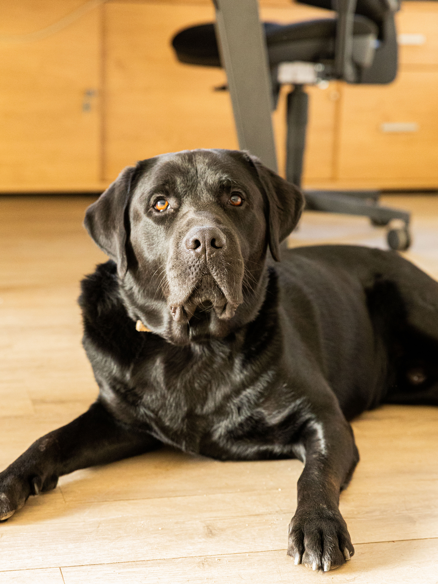Depuis 2021, Storm, un labrador noir originaire de Normandie, apporte chaque jour sa bonne humeur à l’entreprise. Mascotte et véritable membre de l’équipe, il parcourt librement notre terrain de 1 300 m², accueillant chacun avec enthousiasme. Avec sa loyauté et sa joie de vivre, il rappelle à nos équipes l’essentiel : travailler avec passion, simplicité et authenticité.